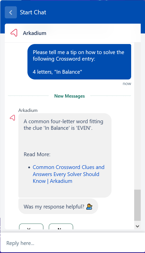 Our brand new Virtual Assistant can be extremely helpful with Crossword puzzles. Instead of using the "reveal" option in an answer, why not ask for a small tip? By saying "Please tell me a tip on how to solve the following Crossword entry", then specify the number of letters and clue, you can arrive at the answer!