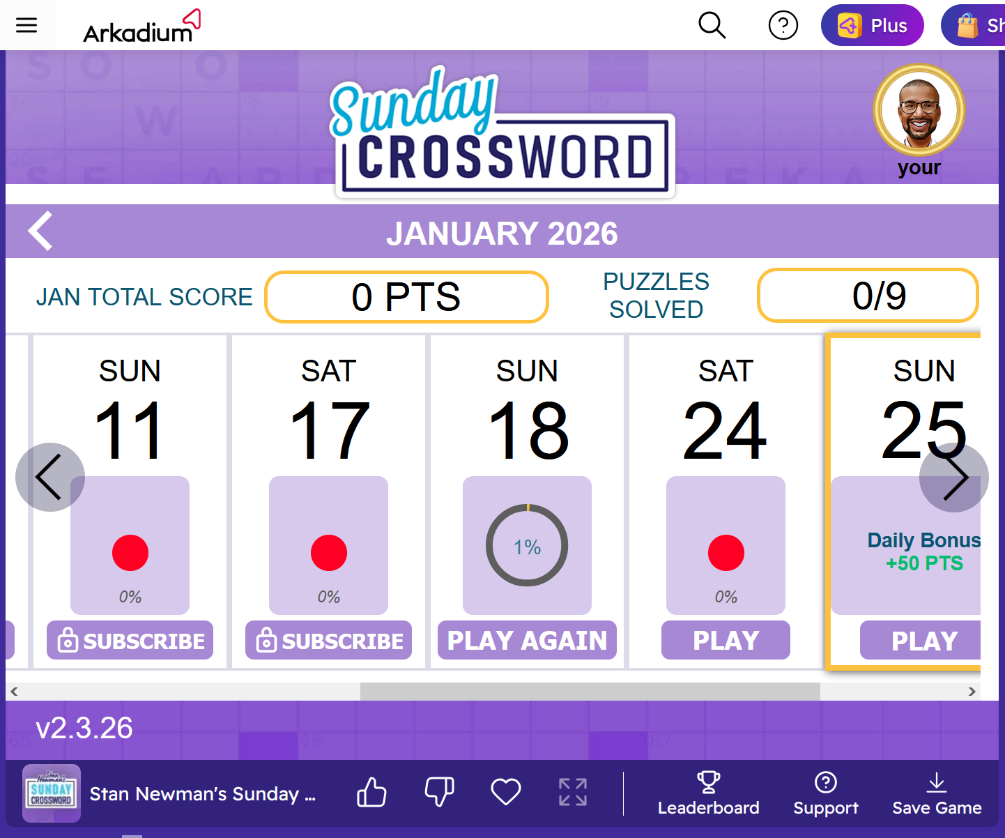 • Users who are subscribed to Arkadium Plus will have the last 30 days of puzzles at their disposal.