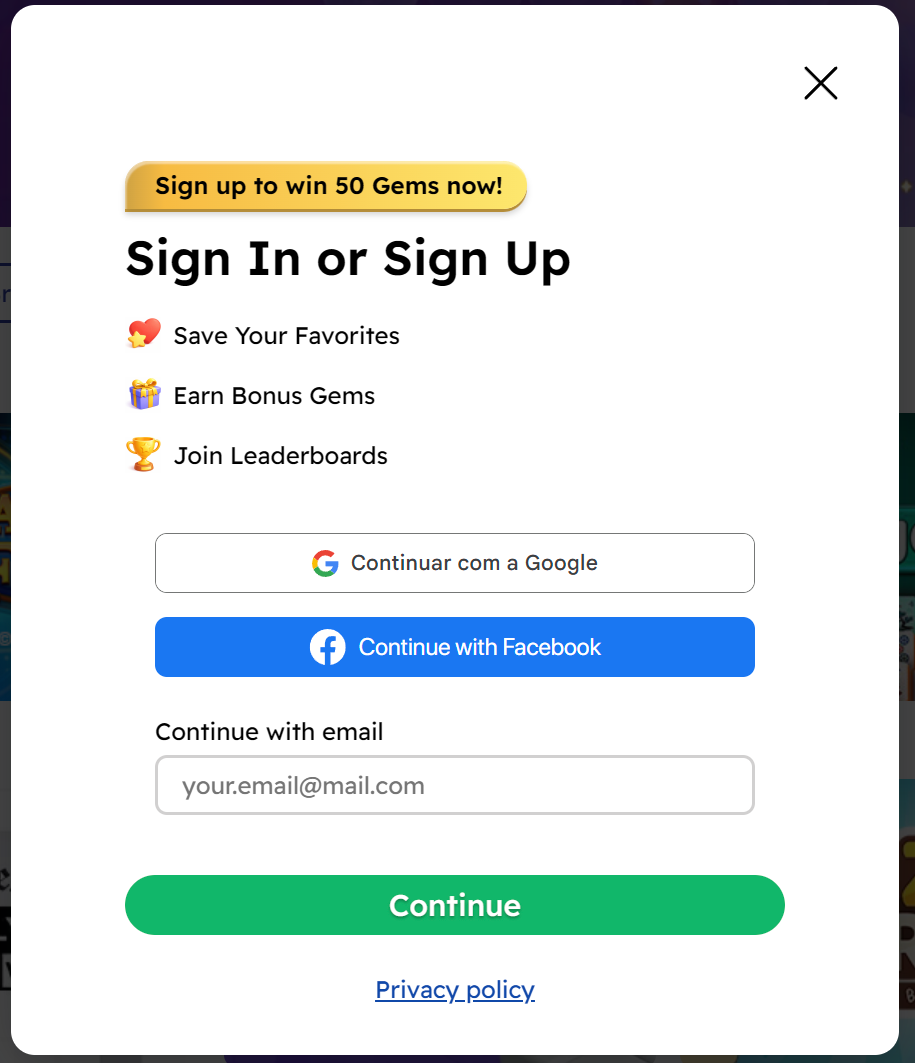 Creating a new Arkadium account is an easy and quick task. Each new account will obtain 50 Free Gems to use as you like on Arkadium.com. Having an account means you'll be able to save your score on our leaderboards.