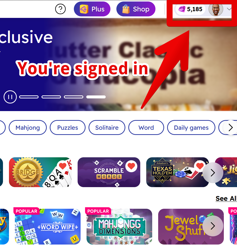1. First, you’ll need to sign in or sign up for an Arkadium profile. If you need help, please check the article: How do I sign in to my Arkadium account? and How do I sign up for an Arkadium account?