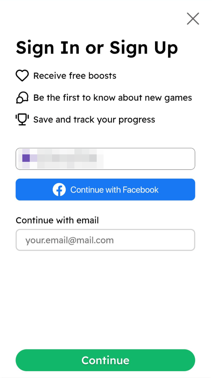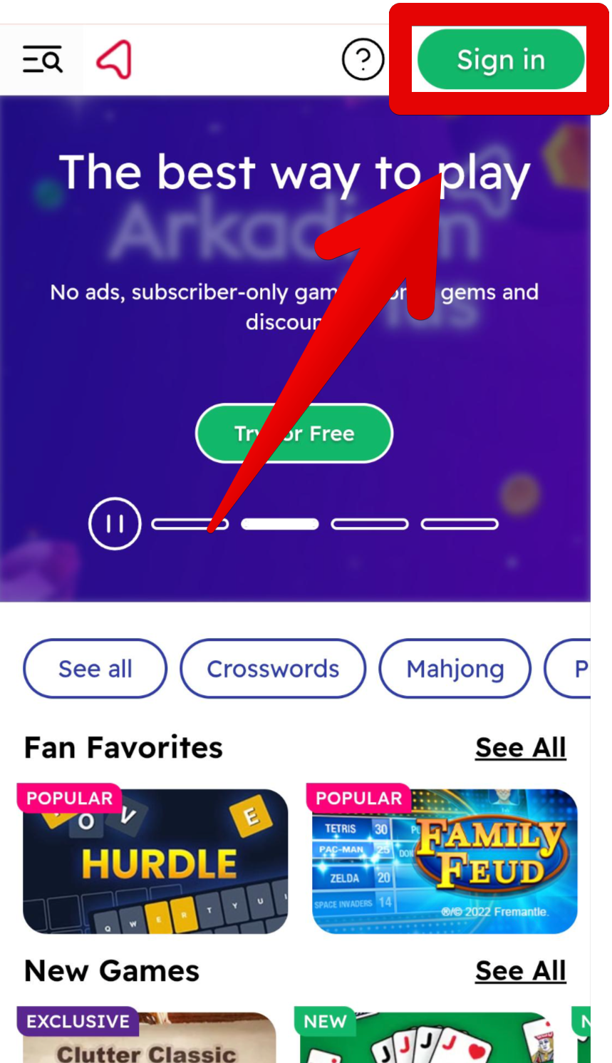 NOTE: you can create a new Arkadium profile by choosing the Sign Up option3. Enter your email and your password, and tap Sign in.