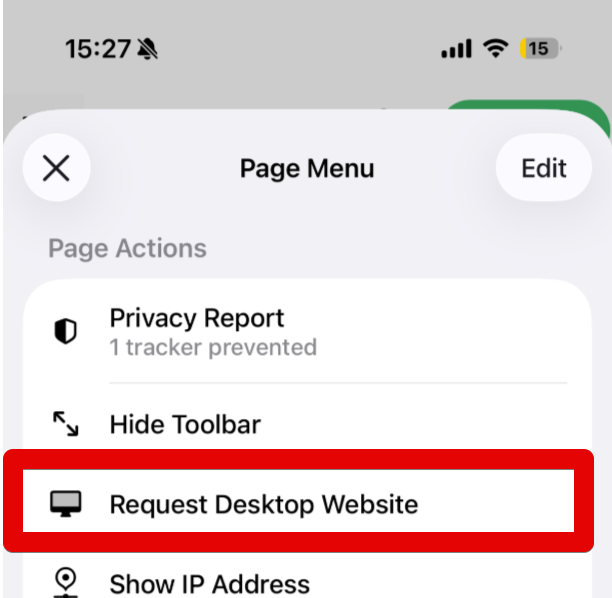 Within Site settings, select Desktop site.