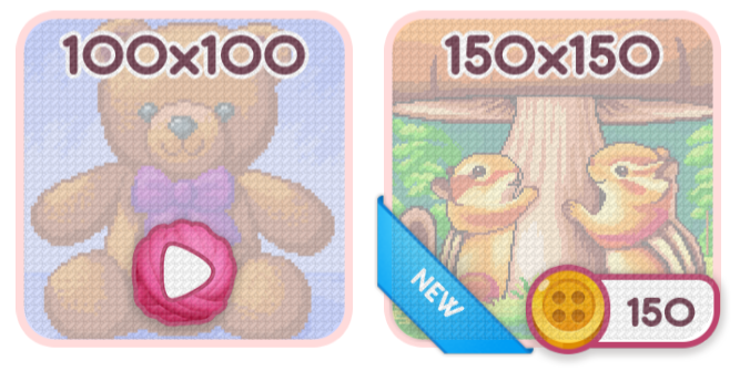 Patterns will always have the number of stitches on top of each one before you choose them. You'll see either a play icon, or an icon with a number of buttons. The patterns with the number of buttons, will cost that amount of buttons. New ones will also be marked as New.