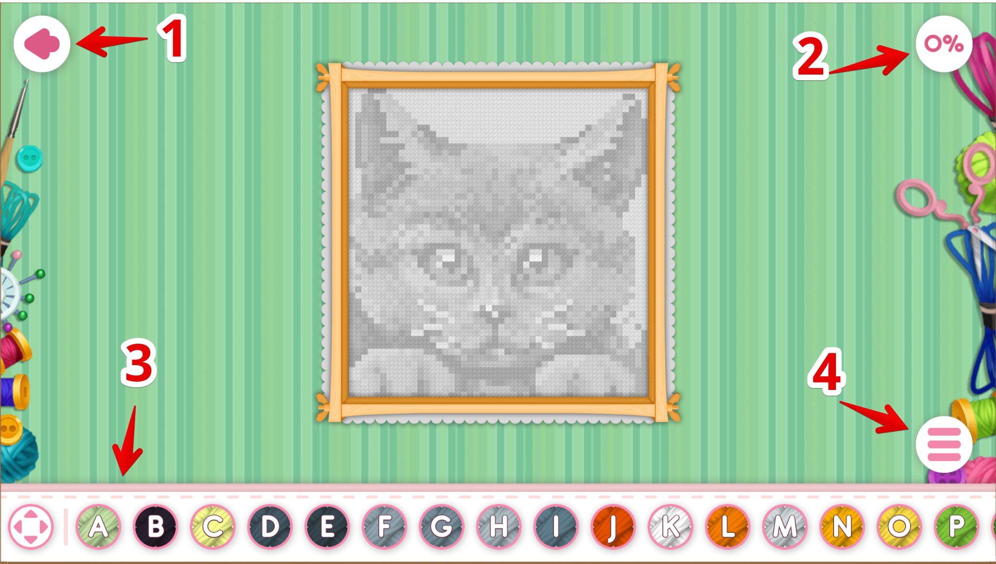 Next to the Cross-Stitch design section you'll see two other buttons. Your Profile and the Options. The profile will give you access to all of your finished designs, while the options will allow you to mute game sounds.