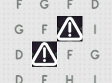 If you've selected the wrong color for a specific stitch, you'll see the stitch appear with a warning sign.