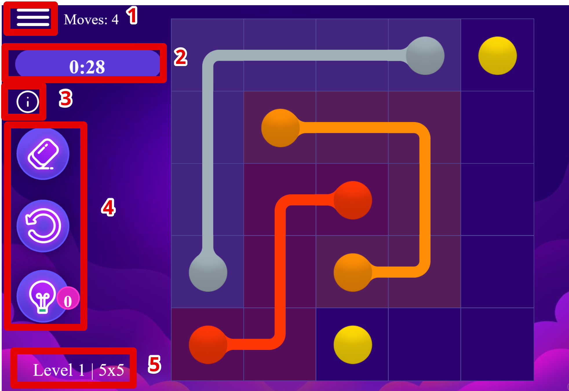 Within the grid, you have to match all of the different dots with their respective dot of the same color. When you match them all by filling the entire grid, you win the level.