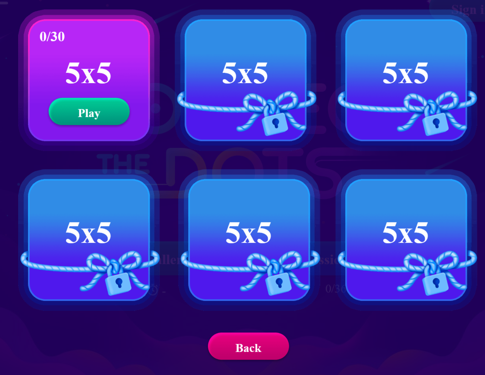 Connect the Dots is a simple color-matching game, where you match same-colored dots in a grid, without crossing over lines.