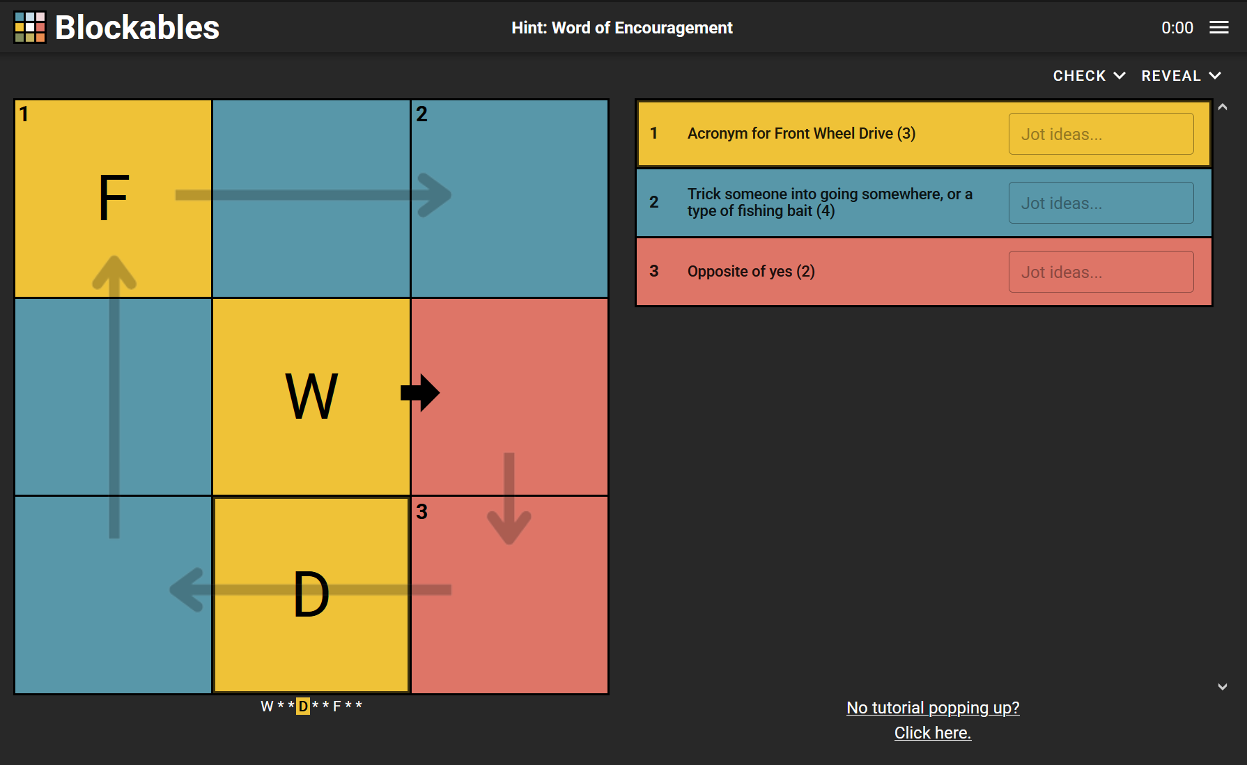 Blockables is a fun daily puzzle game to solve a 3x3 word block puzzle, finding 3 words that form a larger one.
