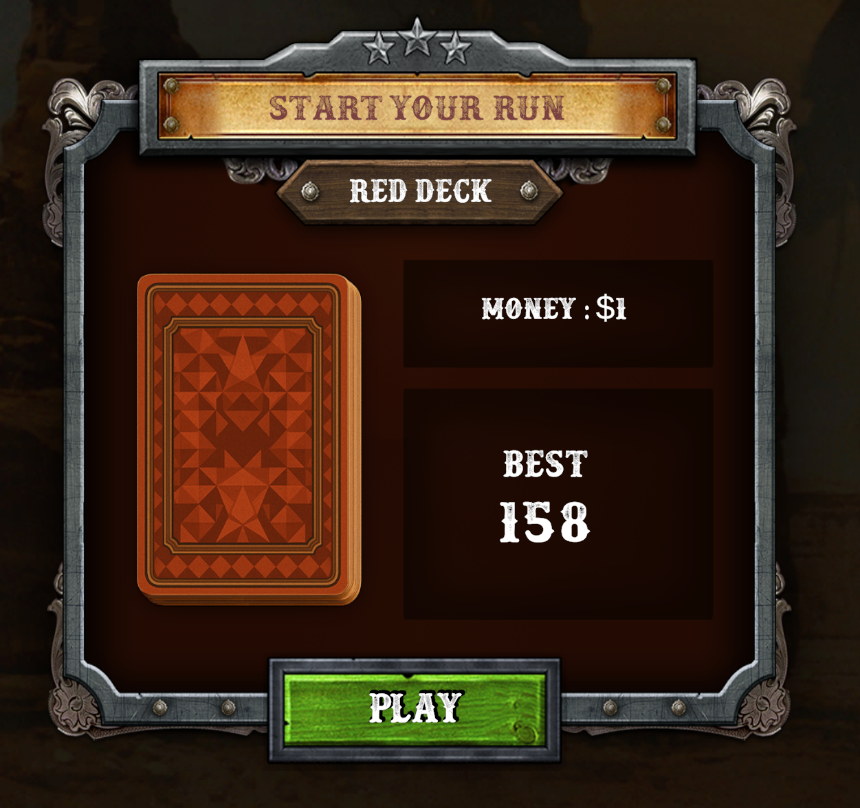 From the introduction screen, you can play by choosing your Red Deck and clicking "Play". You can see your current money and your best score on the right.