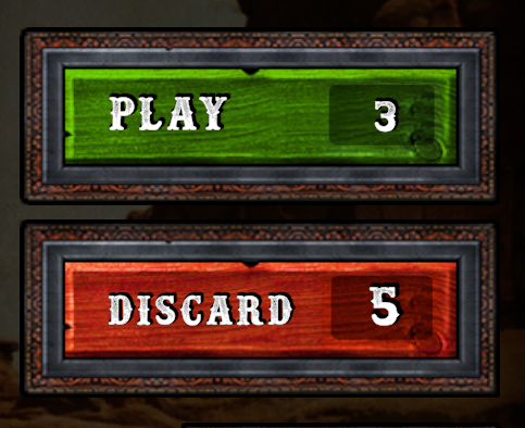 The Play icon indicates the amount of rounds you have to play to make the points. You can Discard up to 5 different cards.