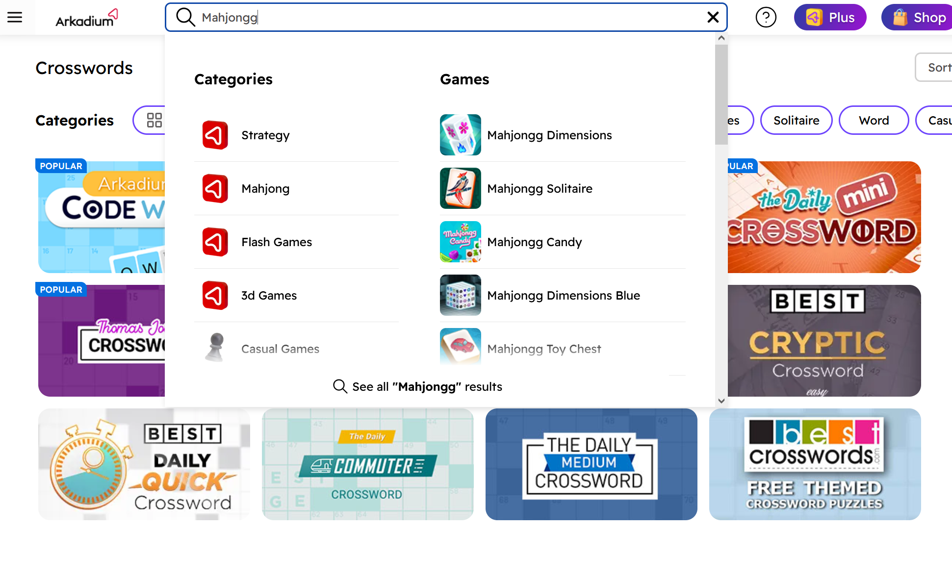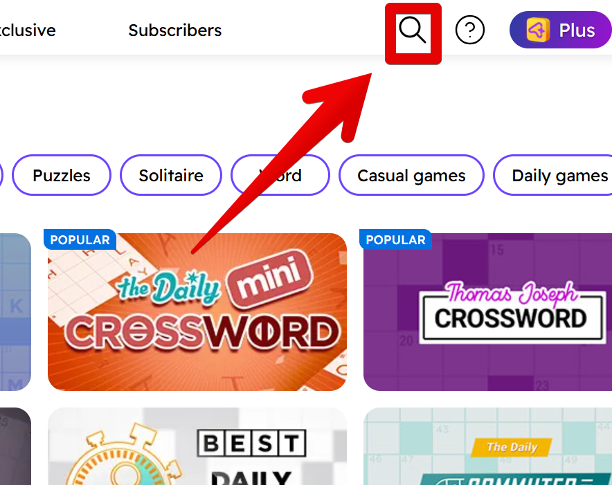 Searching for games on the brand new Arkadium.com page has been made much easier. Click on the magnifying glass icon on top of the page to get started.