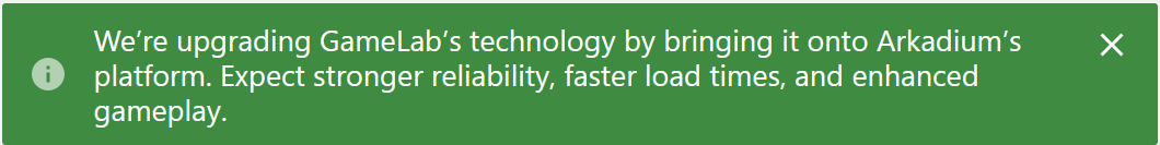 Gamelab has been, for some time now, a scaled down website where you could play Arkadium games in a classic format. In order to provide the best possible experience to our users, we're merging it with our core Arkadium.com website, providing all of the latest versions of our games with a more advanced interface, all currently available features, access to a wider catalog and a friendlier experience.