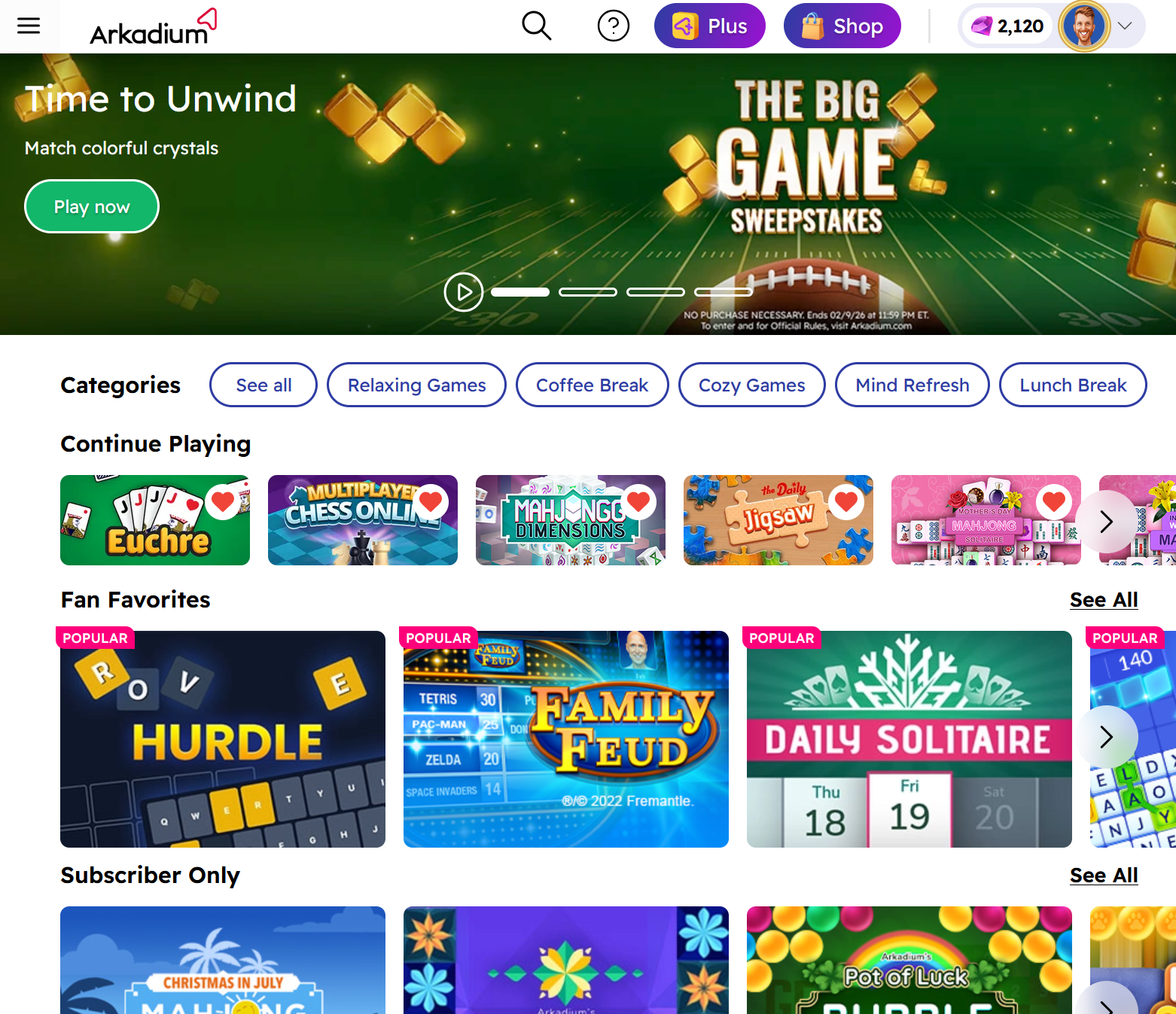 We hope you enjoy your experience on the new and improved Arkadium.com platform. Should you wish for any assistance, please contact support@arkadium.com.